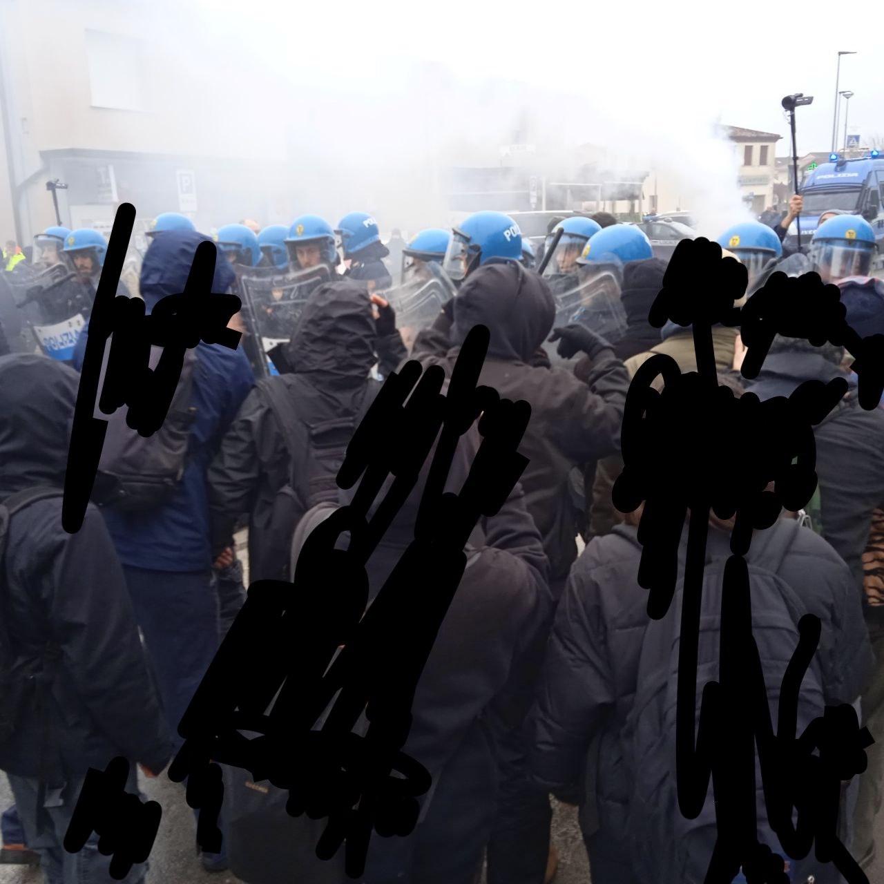 Cariche e scontri al presidio in corso dalle 11 contro la Leonardo Spa a Tessera (Ve). Durante una delle cariche del blocco di una rotonda un compagno è stato portato via dalle guardie che ora stanno chiudendo i compagni a panino. Il blocco della strada che porta alla Leonardo e anche all’aeroporto “Marco Polo” continua.