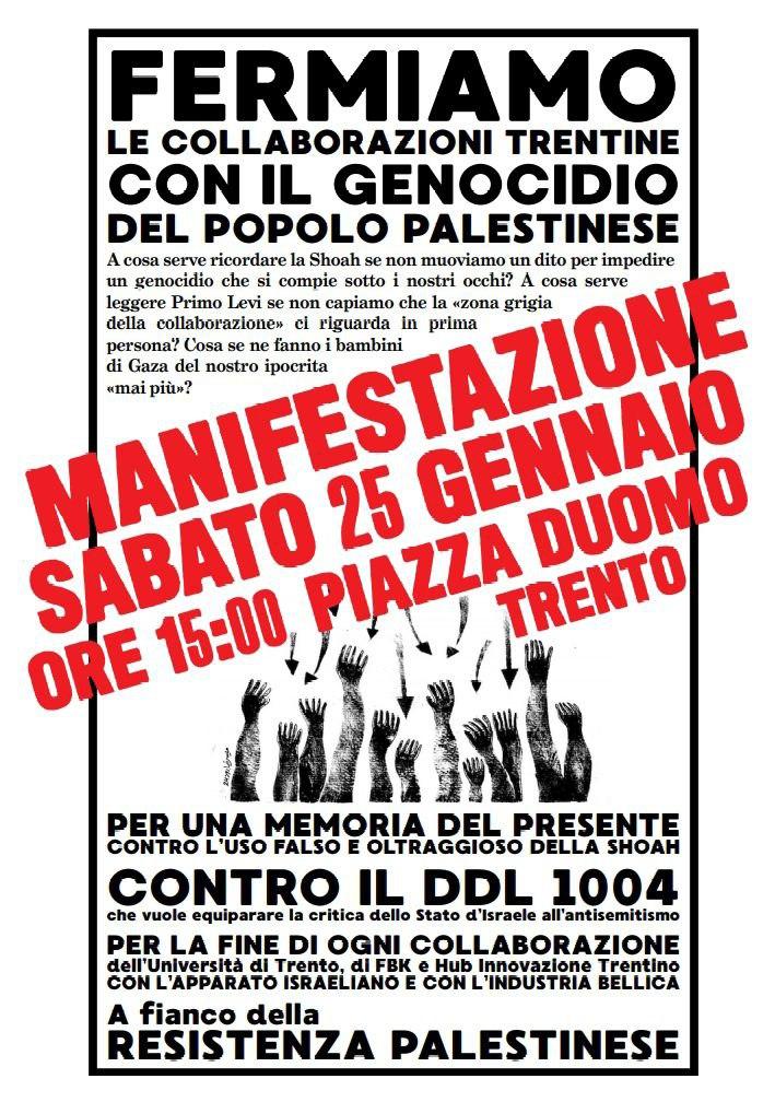 Ore 11.30 Corteo contro la guerra, contro la Leonardo S.p.a. “La guerra non è una questione tra le molte, ma l’orizzonte dentro al quale viviamo. Dobbiamo partire da questa consapevolezza. E fare dei tentativi, per provare ad essere sabbia negli ingranaggi della macchina bellica. Solo così la guerra si può fermare. Per chi vuole essere parte di questo tentativo, ci vediamo a Tessera.”